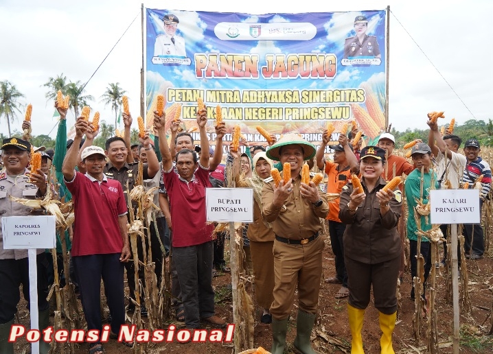 PRINGSEWU, http://potensinasional.id – Pemerintah Kabupaten Pringsewu akan terus mendukung upaya pengembangan jagung sebagai salah satu komoditas strategis, baik untuk kebutuhan pangan, pakan, maupun industri lokal. Pernyataan tersebut disampaikan Bupati Pringsewu Riyanto Pamungkas pada kegiatan Panen Jagung Bersama Program Petani Mitra Adhyaksa di Pekon Enggalrejo, Kecamatan Adiluwih, Kabupaten Pringsewu, Lampung, Selasa (9/12/2025).