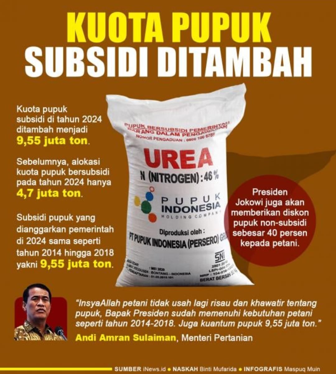 Pemilik kios di Kecamatan Ambarawa, Kabupaten Pringsewu, Agus, mengumumkan bahwa alokasi pupuk subsidi telah ditambah menjadi 9,5 juta ton. Agus menjelaskan bahwa proses penebusan pupuk kini semakin mudah, petani hanya perlu membawa KTP untuk mendapatkan pupuk bersubsidi.