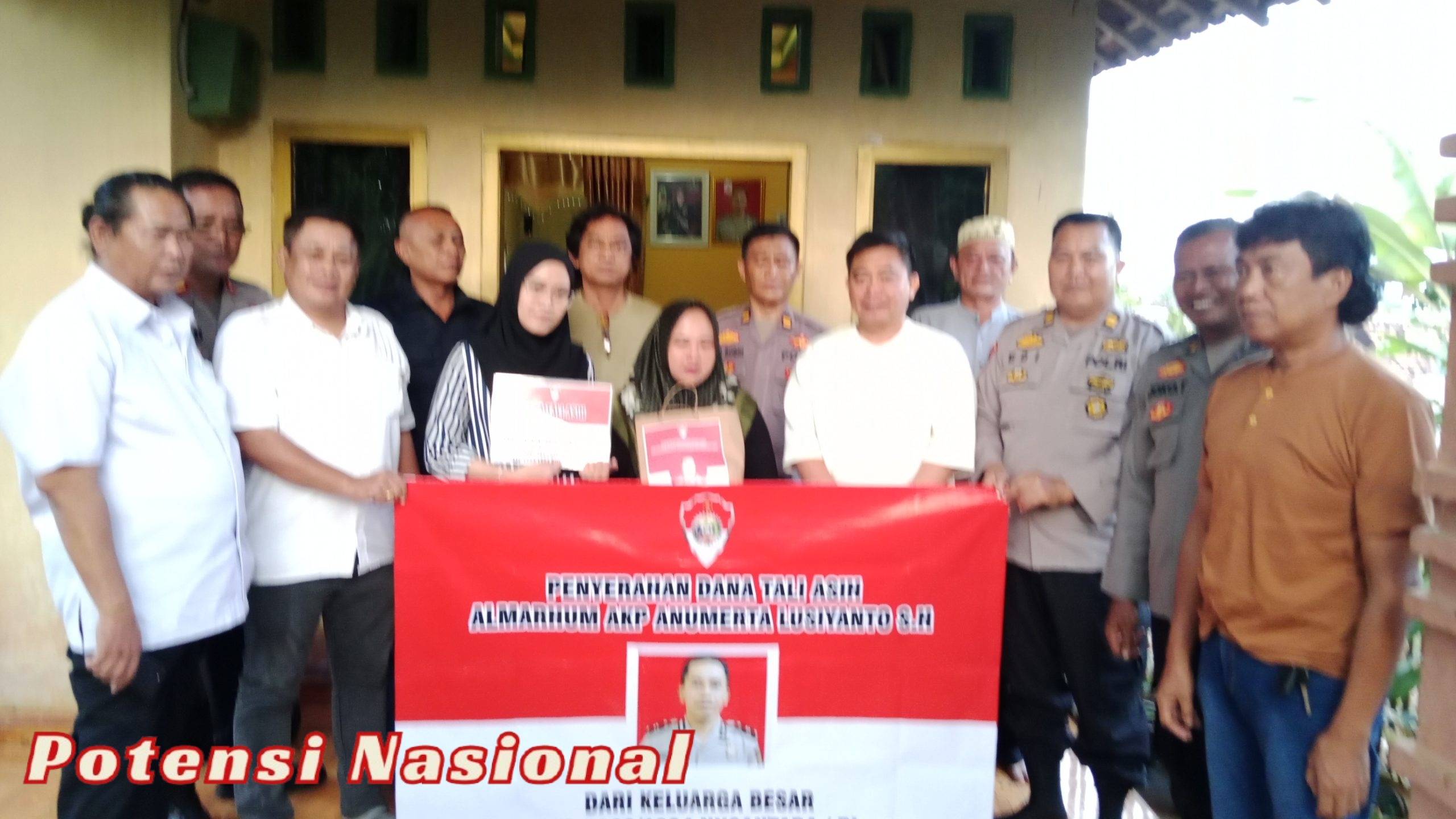 Turut hadir dalam rombongan, Pembina ASP Kompol Syahrial, Kompol Edi Qorinas, Kompol Supriyanto, AKP Haidir Sapuan, serta sejumlah personel lainnya. Kehadiran mereka disambut hangat oleh istri almarhum, Ny. Nia, bersama putri mereka, Salsabila, dalam suasana haru penuh kehangatan dan doa.
