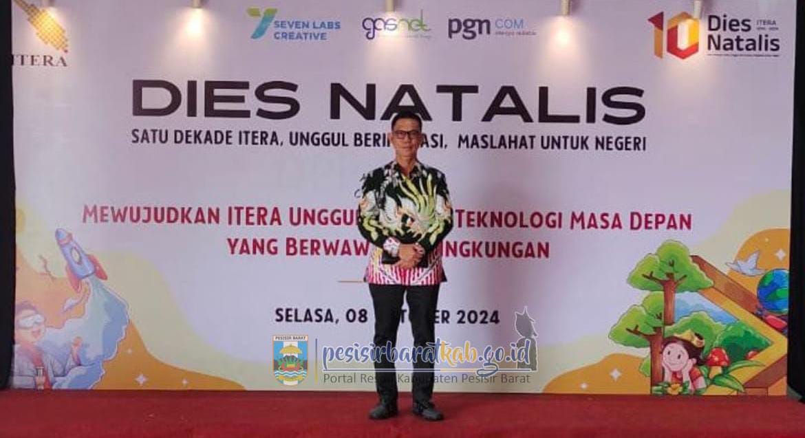 PESISIR BARAT, POTENSINASIONAL-Kadis Kominfotik dan Persandian Pesisir Barat Suryadi, S.IP.,M.M menginformasikan bahwa Bupati Pesisir Barat yang diwakili oleh Asisten III Bidang Administrasi Umum, Drs. Gunawan, M.Si., menghadiri sidang terbuka Dies Natalis ITERA ke-10 yang berlokasi di aula GKU 2 itera, lantai 4 dengan tema “Satu dekade ITERA, unggul berinovasi, maslahat untuk negeri” Selasa(8/10/2024).