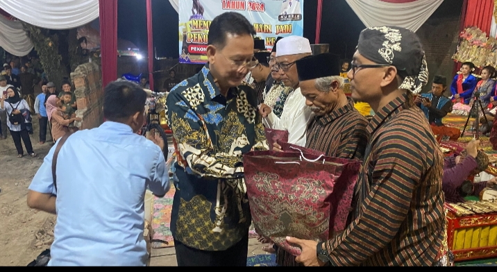 Pringsewu, Potensinasional – Bakal Calon Bupati Pringsewu Adi Erlansyah menghadiri acara Pagelaran Wayang Kulit dalam rangka bersih desa sekaligus memperingati ulang tahun ke-104 Pekon Bulokarto Kecamatan Gading Rejo Kabupaten Pringsewu, Sabtu (27/7/2024) malam.