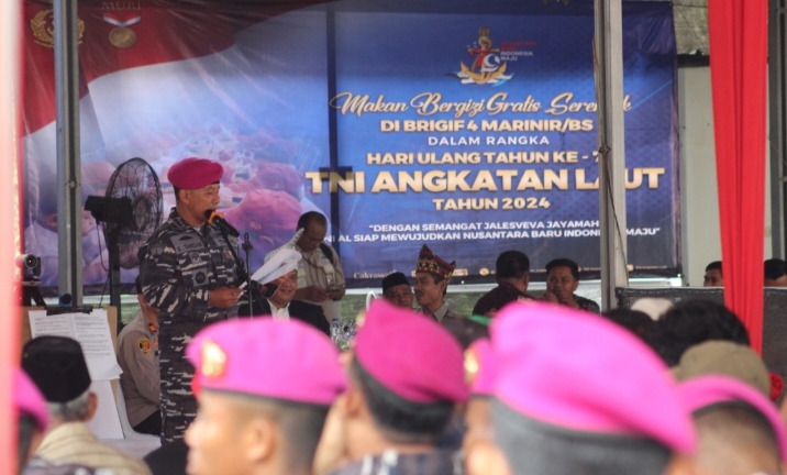 Komandan Brigif 4 Mar/BS, Kolonel Marinir Supriadi Tarigan S.IP., .M.M., dalam sambutannya menyampaikan bahwa kegiatan ini merupakan wujud nyata dari kepedulian Brigif 4 Mar/BS terhadap kesejahteraan dan kesehatan masyarakat. “Kami berharap, kegiatan ini tidak hanya membantu dari sisi kebutuhan pangan, tetapi juga mempererat hubungan antara TNI AL khususnya Brigif 4 Mar/BS dengan masyarakat,“ ujarnya.