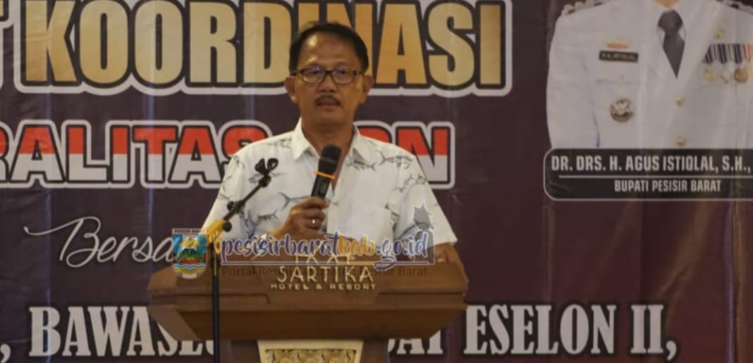 Pesisir Barat,POTENSINSIONAL-Kepala Dinas Komunikasi, Informatika, Statistik, dan Persandian (Diskominfotiksan), Suryadi, S.IP., M.M., menginformasikan bahwa, Bupati Pesisir Barat (Pesibar), Dr. Drs. Agus Istiqlal, S.H., M.H., menghadiri kegiatan Rapat Koordinasi (Rakor) Netralitas Aparatur Sipil Negara (ASN) bersama forkopimda, Komisi Pemilihan Umum (KPU), Badan Pengawas Pemilu (Bawaslu), Pejabat Eselon II, para Tokoh Adat dan Tokoh Masyarakat, di Aula Sartika Hotel dan Resort Pekon Seray Kecamatan Pesisir Tengah, Sabtu (31/8/2024) malam.