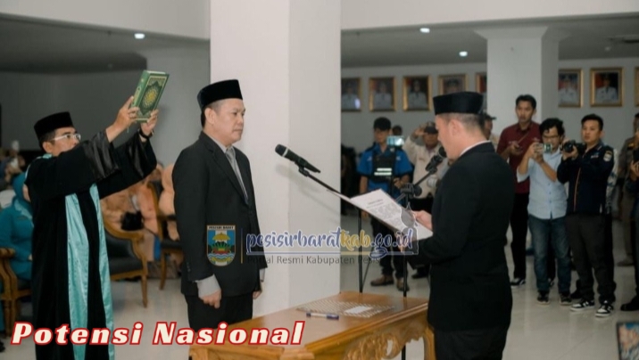PESISIR BARAT, POTENSI NASIONAL – Kepala Dinas Komunikasi, Informatika, Statistik, dan Persandian (Diskominfotiksan) Suryadi, S.IP., M.M., menginformasikan bahwa, Bupati Pesisir Barat (Pesibar), Dedi Irawan, resmi melantik Kepala Badan Pendapatan Daerah (Bapenda), Tedi Zadmiko, S.KM., S.H., M.M., sebagai Penjabat (Pj) Sekretaris Daerah (Sekda) Pesibar, di Lobi Lantai 1 Gedung A Komplek Perkantoran Pemkab Pesibar, Jumat (7/3/2025).