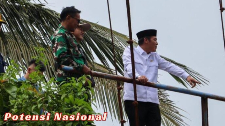 PESISIR BARAT, POTENSI NASIONAL – Bupati Pesisir Barat (Pesibar), Dedi Irawan, meninjau kondisi kerusakan Jembatan Gantung Way Pemerihan yang menghubungkan Pekon Sumber Rejo dengan Pekon Way Haru, Kecamatan Bangkunat, Kabupaten Pesisir Barat, Lampung, pada Rabu (26/3/2025).