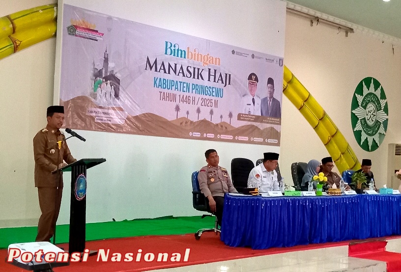 PRINGSEWU, potensinasional.id – Bupati Pringsewu Riyanto Pamungkas membuka Bimbingan Manasik Haji 2025 di Graha KH.Ahmad Dahlan, Komplek Universitas Muhammadiyah Pringsewu, Kelurahan Pringsewu Barat, Kecamatan Pringsewu, Kabupaten Pringsewu, Senin (14/4/2025)