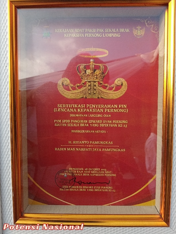 Prosesi penabalan dipimpin langsung oleh Paduka Yang Mulia Saibatin Puniakan Dalom Beliau (PYM SPDB) Hi.Pangeran Edward Syah Pernong, Sultan Sekala Brak Yang Dipertuan Ke-23, pada gelar adat Angkon Muwakhi di Pendopo Kabupaten Pringsewu, Rabu (8/10/2025).