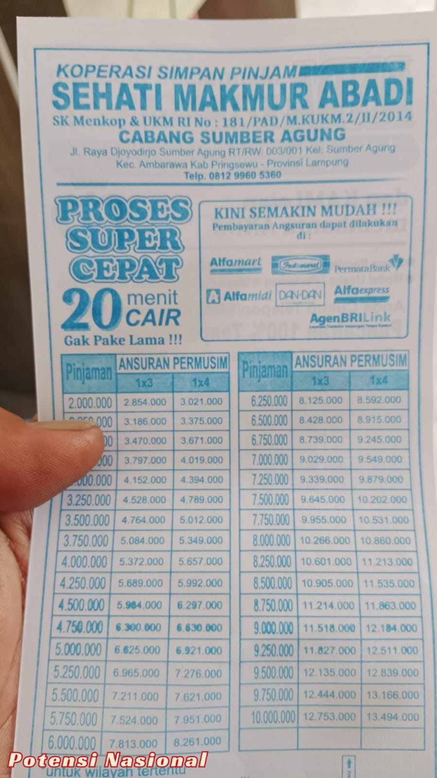 Pringsewu, Potensinasional.id – Sebuah koperasi simpan pinjam bernama KSP Sehati Makmur Abadi diduga melanggar sejumlah ketentuan hukum dan peraturan pemerintah. Laporan masyarakat menyebutkan bahwa koperasi ini beroperasi tanpa izin resmi di Kabupaten Pringsewu, Provinsi Lampung, serta menjalankan praktik yang tidak sesuai dengan prinsip koperasi.
