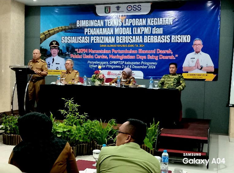 Kadis Penanaman Modal dan Perizinan Terpadu Satu Pintu (PM-PTSP) Kabupaten Pringsewu A.Handri Yusuf mengatakan bimtek berlangsung selama empat hari dengan jumlah peserta sebanyak 50 pelaku usaha/hari, atau seluruhnya sebanyak 200 peserta, dengan narasumber Kadis PM-PTSP Lampung Selatan Firdaus, serta dari Dinas PM-PTSP dan Dinas Kesehatan Kabupaten Pringsewu.
