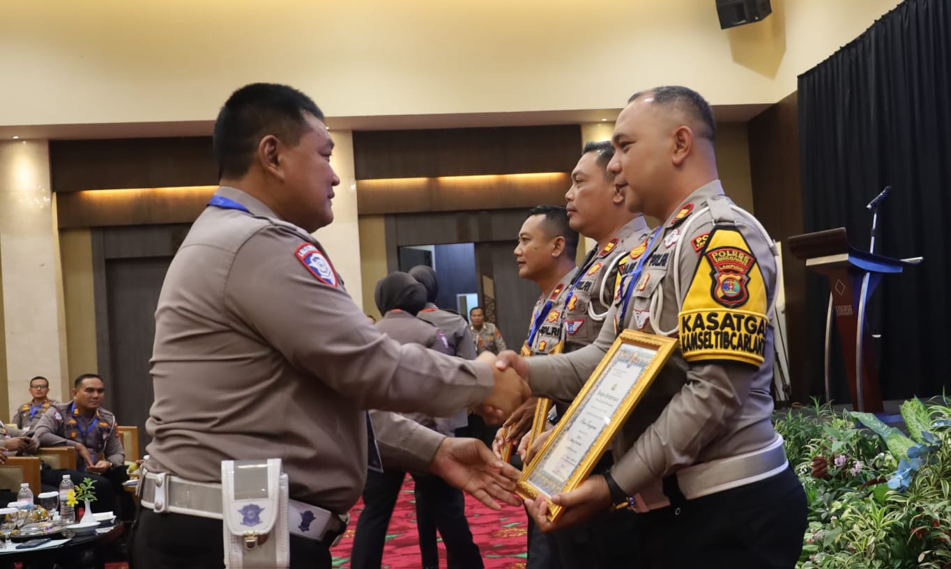 Penghargaan tersebut diserahkan kepada Kasat Lantas Polres Tanggamus pada kegiatan Rapat Kerja Teknis (Rakernis) Fungsi Lalu Lintas Tahun 2024 yang berlangsung pada Selasa, 10 Desember 2024.
