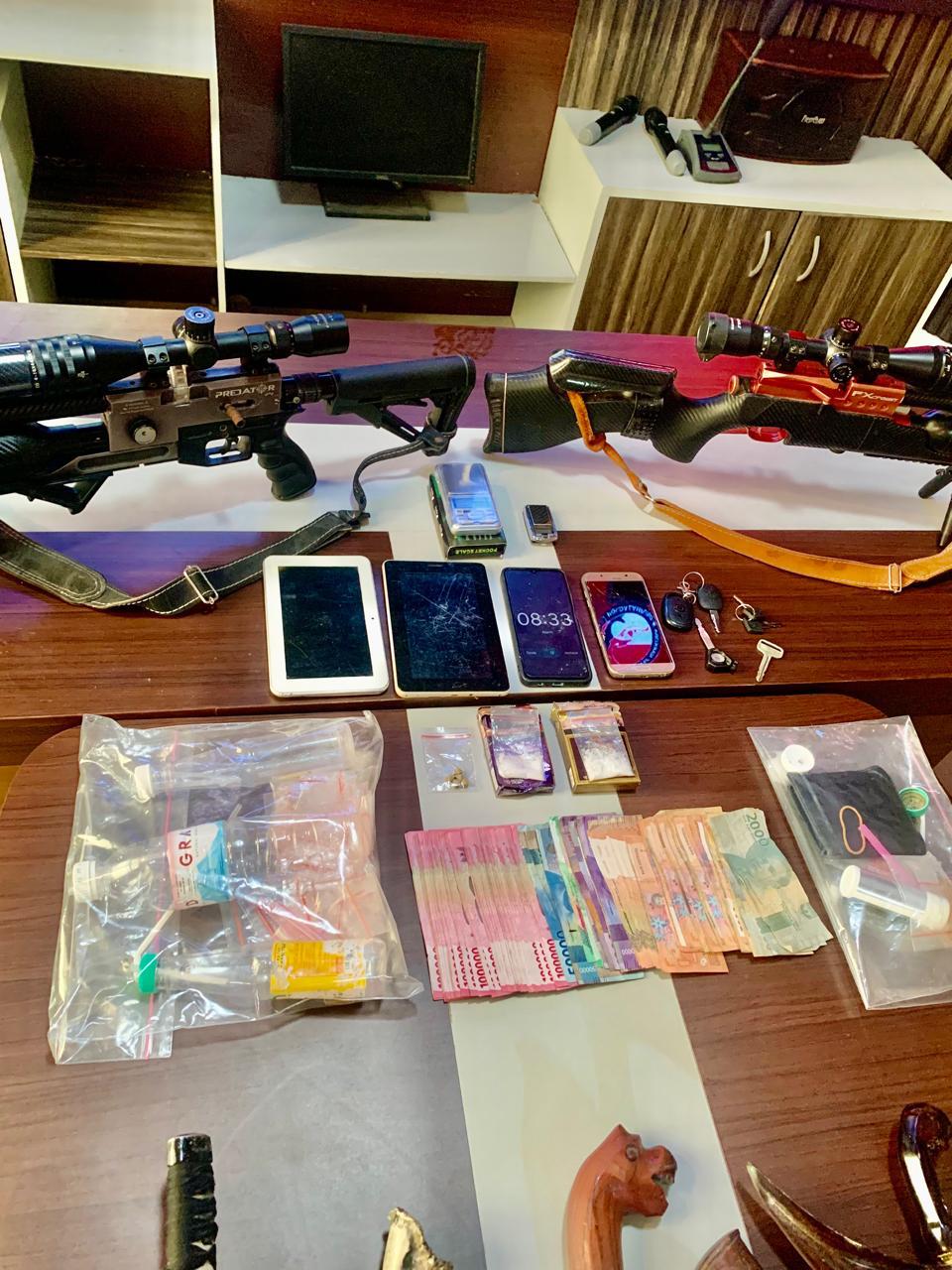 Meski tak banyak sabu yang didapatkan, namun dari salah satu rumah bandar narkoba polisi mendapatkan banyak senjata tajam jenis golok hingga samurai serta dua senapan angin kaliber 4,5mm.