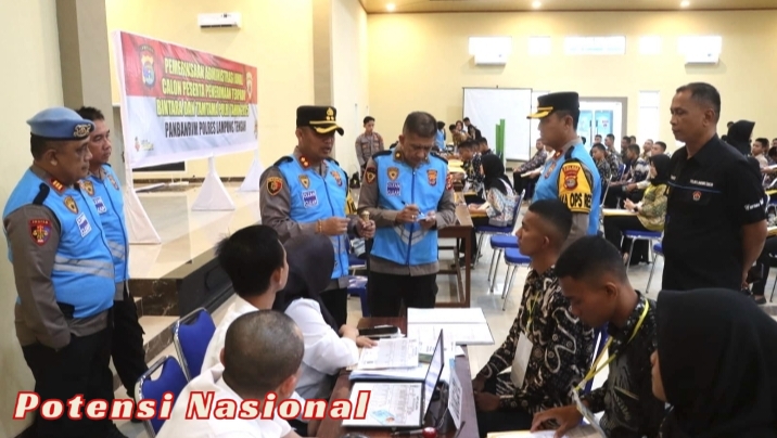 Lampung Tengah, Potensi Nasional – Kapolres Lampung Tengah, AKBP Andik Purnomo Sigit, S.H., S.I.K., M.M., bersama jajaran Pejabat Utama (PJU), meninjau langsung pelaksanaan pemeriksaan administrasi (Rikmin) dalam seleksi penerimaan calon anggota Polri Tahun Anggaran 2025.