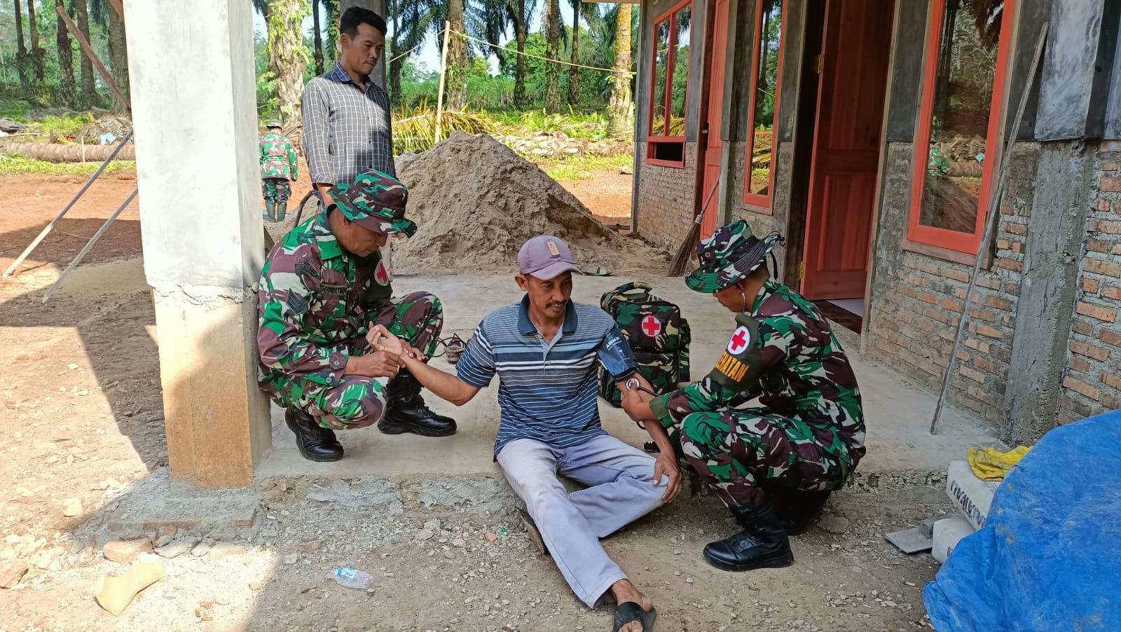 Serka Supratmin menjelaskan, “Kami dari Denkesyah Bandar Lampung yang terlibat dalam Satgas TMMD ini, membawa tim kesehatan berjumlah tiga orang. Tim ini dipimpin oleh saya sendiri dan siap memberikan pelayanan kesehatan gratis baik kepada Satgas maupun warga yang membutuhkan.”