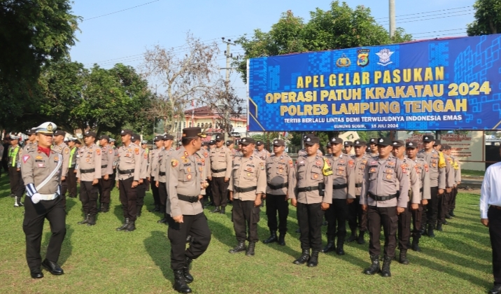 Polres Lampung Tengah, Potensinasional –Polda Lampung melaksanakan apel gelar pasukan dalam rangka Operasi Patuh Krakatau 2024, bertempat di lapangan apel Mapolres setempat. Senin (15/7/24) pagi.
