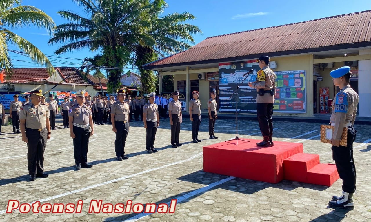 PESISIR BARAT, POTENSI NASIONAL- Kepala Kepolisian Resor Pesisir Barat, AKBP Alsyahendra, S.I.K., M.H., memimpin langsung upacara kenaikan pangkat reguler bagi 13 personel Polres Pesisir Barat pada Kamis, 2 Januari 2025, di Mako Polres Pesisir Barat. Acara tersebut dihadiri oleh seluruh jajaran Polres Pesisir Barat dan menjadi momen penting dalam rangka meningkatkan semangat serta profesionalisme para personel.