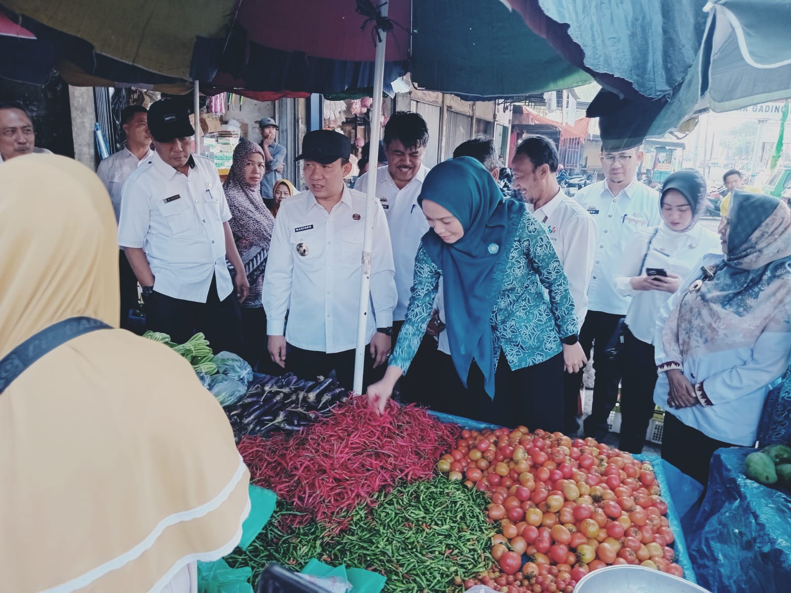 Pj.Bupati Pringsewu bersama Pj.Ketua TP-PKK Kabupaten Pringsewu Agnesia Marindo pada kesempatan tersebut berkeliling ke dalam pasar dan berdialog dengan para pedagang. Bahkan, berbelanja sejumlah kebutuhan pokok hingga sayuran dan buah-buahan.