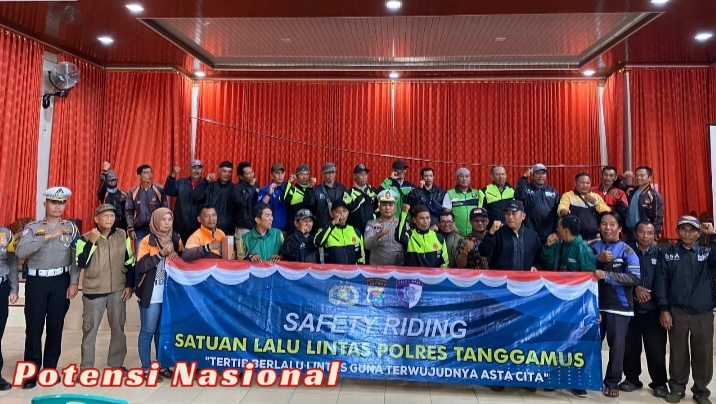Tanggamus, Potensi Nasional – Satuan Lalu Lintas (Satlantas) Polres Tanggamus menggelar kegiatan safety riding bersama komunitas ojek di Kecamatan Gisting pada Sabtu 15 Februari 2025, bertujuan untuk memberikan pemahaman kepada para pengemudi ojek tentang cara berkendara yang baik, aman, serta pentingnya mematuhi aturan lalu lintas.