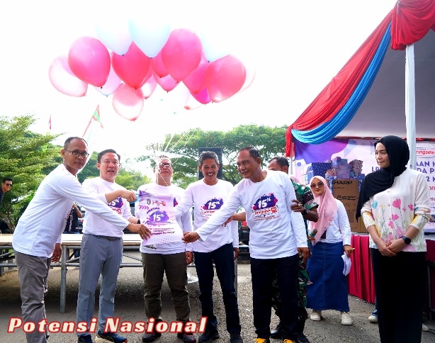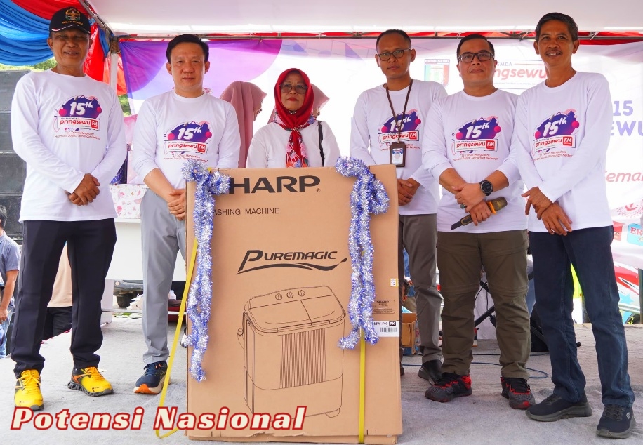 PRINGSEWU, POTENSI NASIONAL – Lembaga Penyiaran Publik Lokal (LPPL) Radio Siaran Pemerintah Daerah (Rapemda) Pringsewu FM 107.2 Mhz merayakan HUT ke-15. Acara yang digelar di Area Wisata Kuliner Nggruput, Komplek Pemda Pringsewu, Minggu (05/01/2025) pagi, berlangsung meriah dengan berbagai kegiatan, diantaranya senam pagi bersama, hiburan musik, prosesi pemotongan tumpeng dan pelepasan balon ke udara, serta undian doorprize.