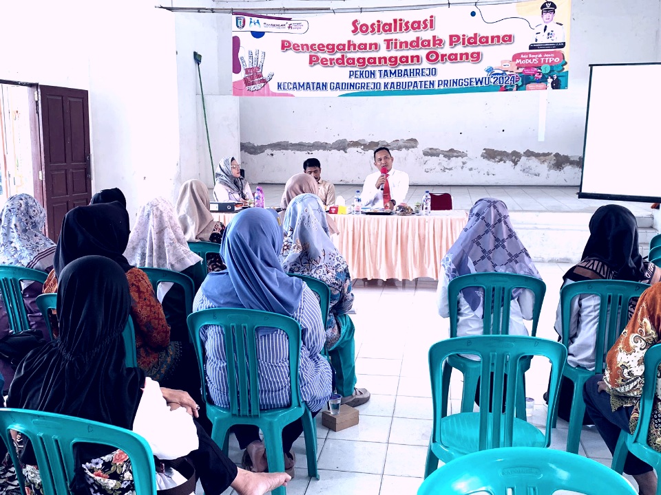 Kanit Perlindungan Perempuan dan Anak (PPA) Polres Pringsewu Aipda Zultomi pada acara Sosialisasi Pencegahan Tindak Pidana Perdagangan Orang di Balai Pekon Tambah Rejo, Kecamatan Gading Rejo, Rabu (20/11/2024) mengatakan TPPO sering kali melibatkan tipu daya, seperti janji pekerjaan dengan gaji tinggi di luar kota maupun luar negeri, yang ternyata berujung pada eksploitasi korban.