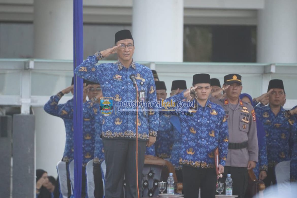 Pesisir Barat,POTENSI NASIONAL-Kepala Dinas Komunikasi, Informatika, Statistik dan Persandian (Diskominfotiksan), Suryadi, S.IP., M.M., menginformasikan bahwa, Pemerintah Kabupaten (Pemkab) Pesisir Barat (Pesibar) menggelar upacara paripurna bulanan di Halaman Komplek Perkantoran Pemkab Pesibar, Selasa(17/9/2024).