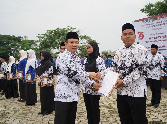 Menyampaikan amanat tertulis Menteri Pendidikan Dasar dan Menengah RI Abdul Mu’ti, Pj Bupati Pringsewu mengucapkan selamat Hari Guru Nasional 25 November 2024 kepada para guru di seluruh tanah air, baik yang mendidik di kota-kota besar, satuan pendidikan yang ternama, maupun mereka yang mengabdi di pelosok desa, di satuan pendidikan dengan fasilitas, sarana prasarana pendidikan yang terbatas, ala kadarnya, yang kesemuanya merupakan tugas mulia dalam upaya mencerdaskan dan memajukan bangsa.