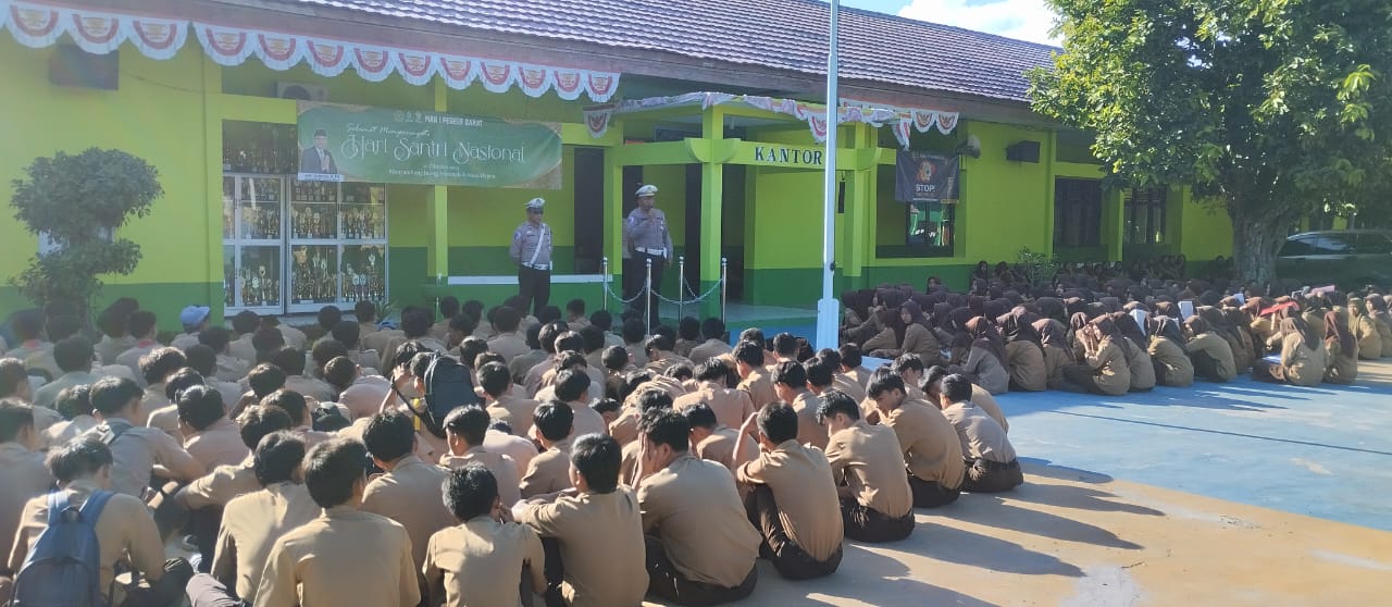 PESISIR BARAT, POTENSINASIONAL-Satuan Lalu Lintas Polres Pesisir Barat Laksanakan Police Goes To School sosialisasi Safety Riding dalam rangka Ops Zebra Krakatau 2024 di MAN 1 Krui, Pekon Kampung jawa, Kec. Pesisir Tengah Kab. Pesisir Barat, Sabtu (26/10/2024).