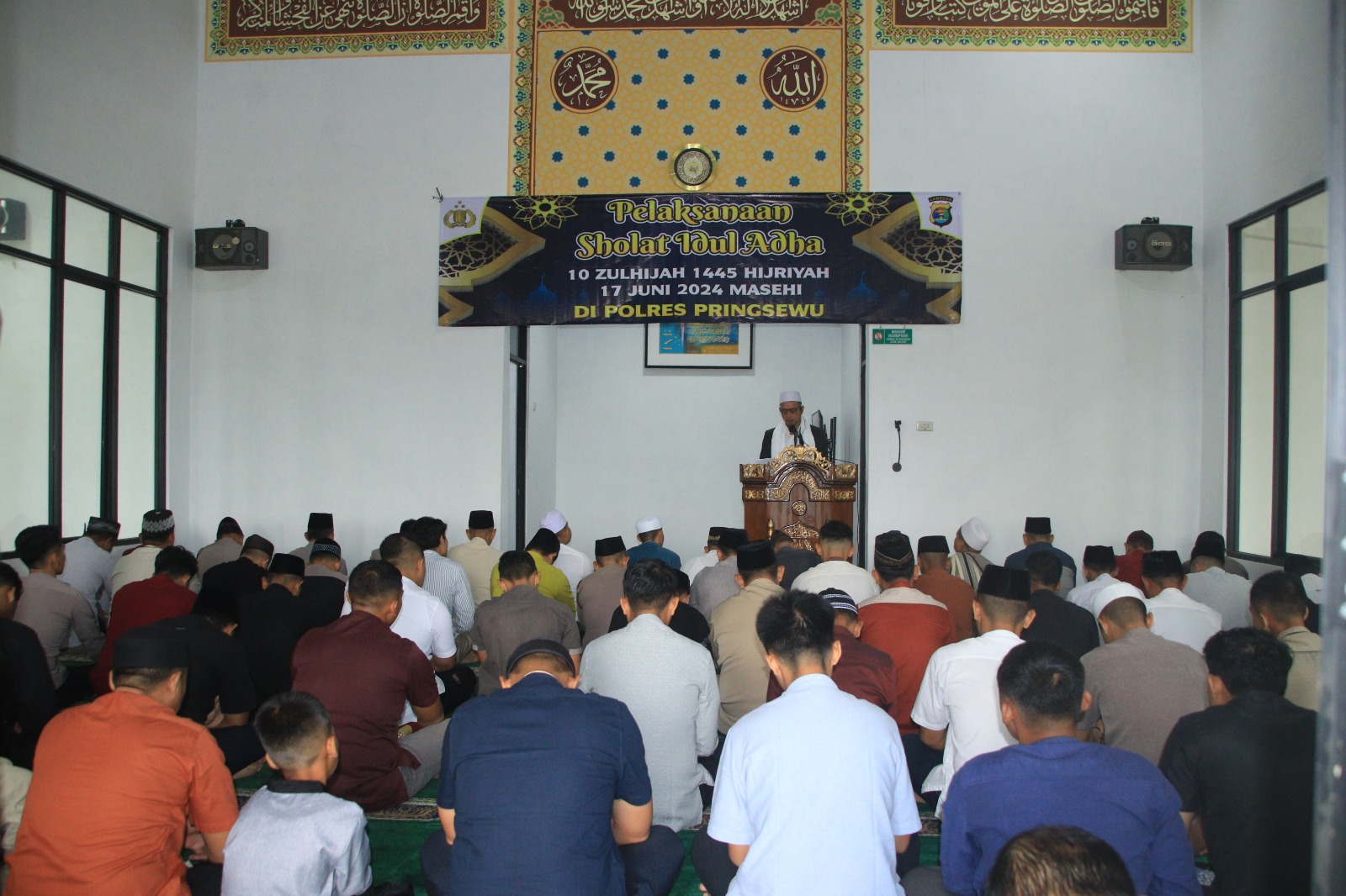 Setelah sholat Idul Adha, kegiatan dilanjutkan dengan penyembelihan hewan qurban di area Mapolres Pringsewu. Tahun ini, Polres Pringsewu menyembelih hewan qurban yang terdiri dari dua ekor sapi dan delapan ekor kambing. Proses penyembelihan dilakukan sesuai dengan syariat Islam dan melibatkan panitia qurban yang sudah ditunjuk sebelumnya.