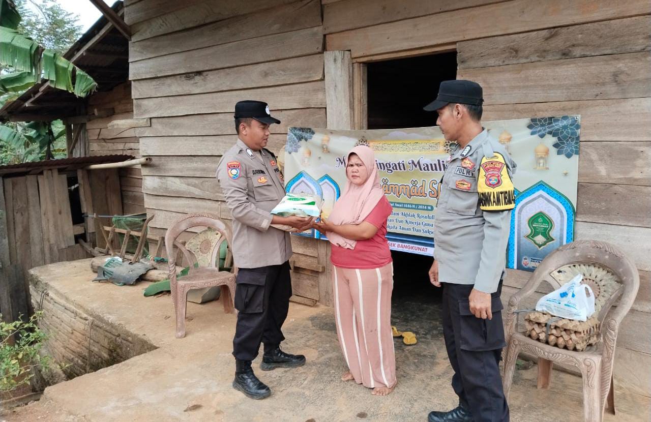Pesisir Barat, POTENSI NASIONAL-Dalam rangka memperingati Maulid Nabi Muhammad SAW, Polsek Bengkunat menggelar kegiatan sosial berupa pembagian sembako kepada warga yang membutuhkan di Pekon Bandar Jaya, Kecamatan Ngaras, Kabupaten Pesisir Barat. Senin (16/09/24)
