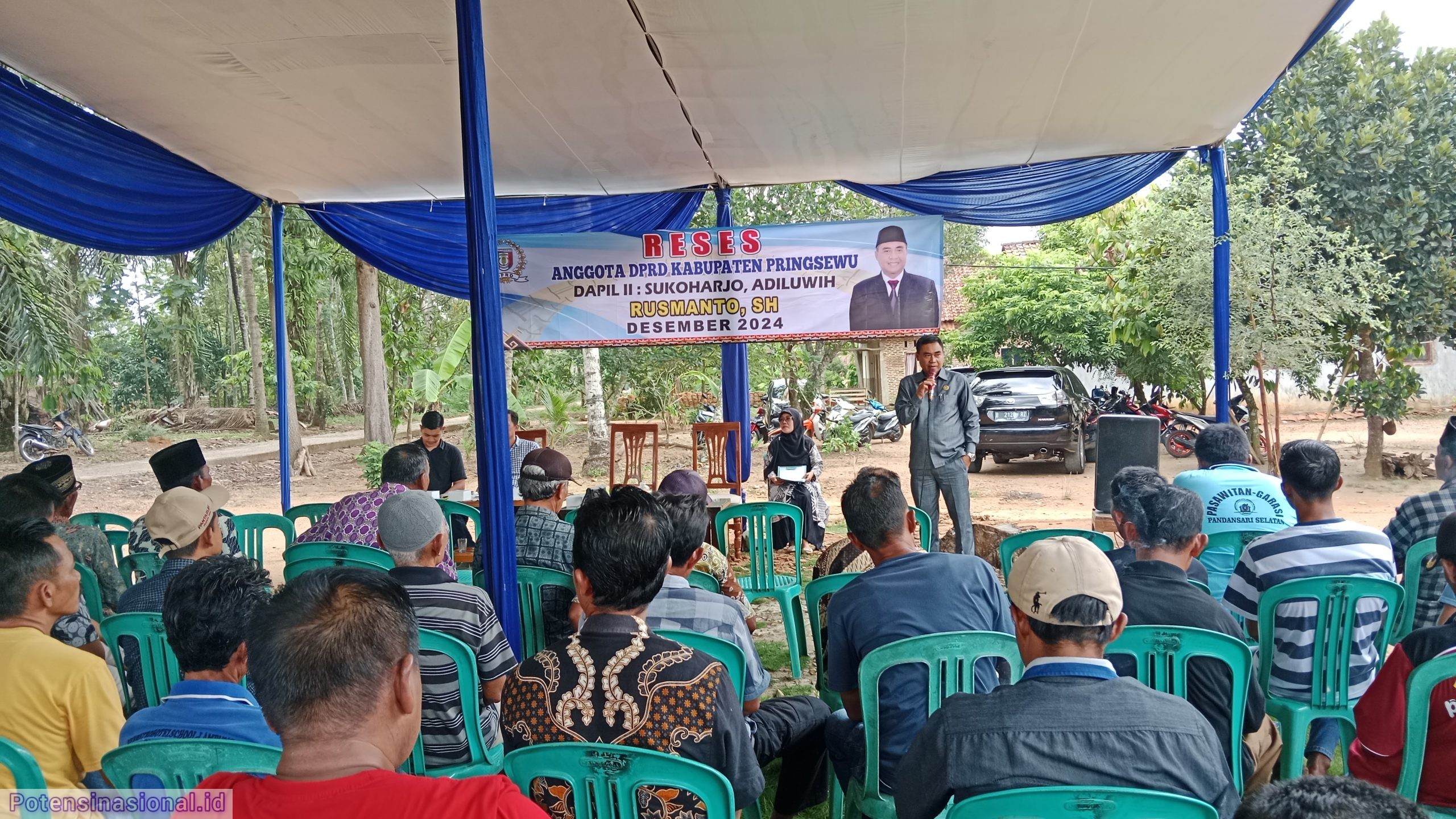 Pringsewu, Potensi Nasional — Rusmanto ,S.H, Anggota DPRD Kabupaten Pringsewu ( Komisi 3) mewakili dapil 2 Sukoharjo, Adiluwih menggelar Reses akhir tahun 2024 untuk menyerap aspirasi masyarakat di dapilnya yang berlangsung di Pekon Pandansari Selatan Kecamatan Sukoharjo, pada sabtu (14/12/2024).