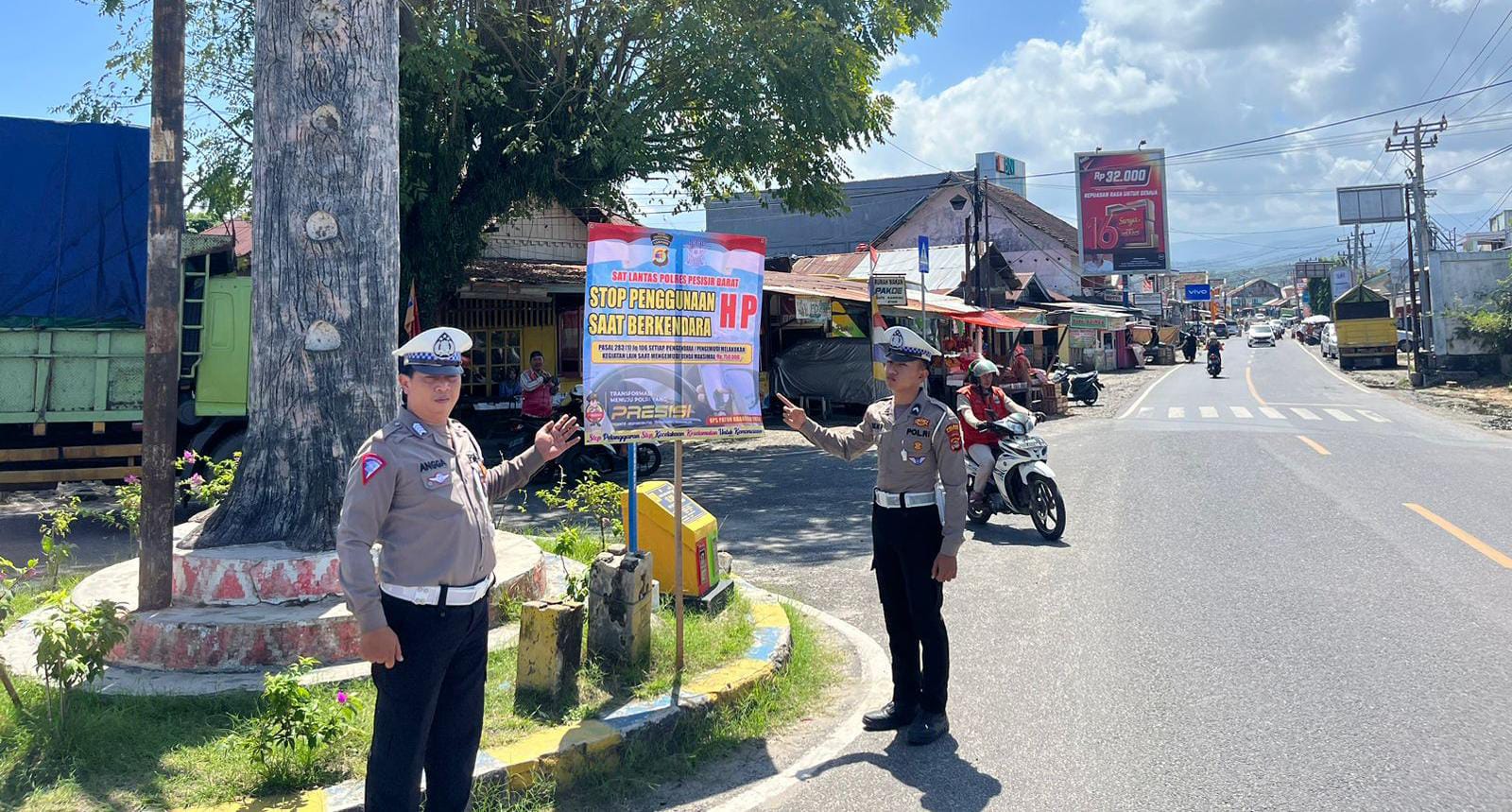 Banner himbauan tersebut dipasang di sejumlah titik padat lalu lintas, seperti di simpang-simpang jalan utama, pusat perbelanjaan, dan area publik lainnya. Isi dari banner ini mengingatkan pengendara untuk selalu menggunakan helm, mengenakan sabuk pengaman, tidak menggunakan ponsel saat berkendara, serta mengutamakan keselamatan di jalan.