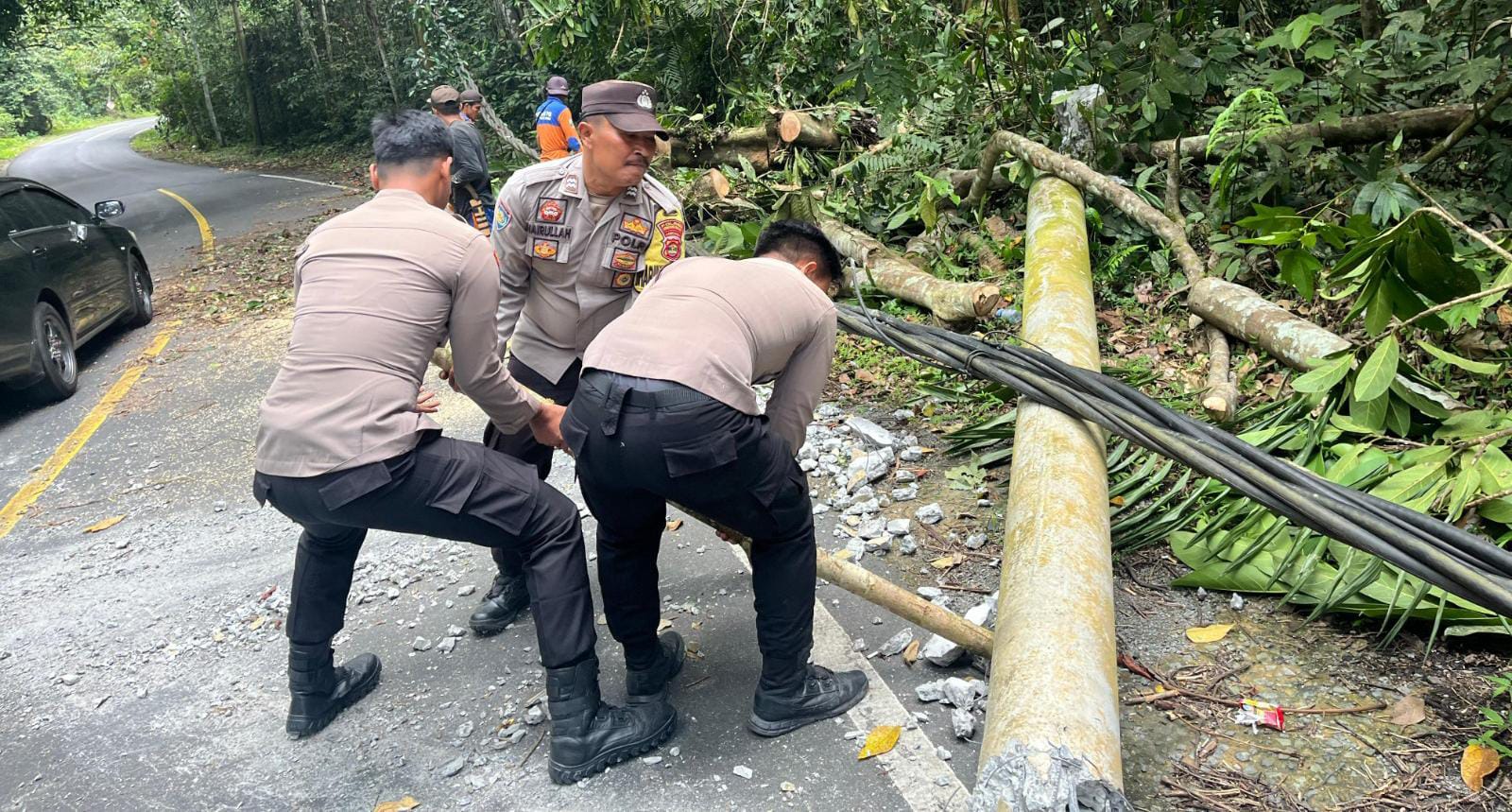 “Personel Polsek Bengkunat bekerja sama dengan Tim BPBD untuk memastikan jalan tetap dapat dilalui dengan memotong dan memangkas batang kayu yang mengahalangi sebagaian badan jalan dan melakukan pengaturan lalu lintas agar tidak terjadi kemacetan,” ujar IPDA Kasiyono.
