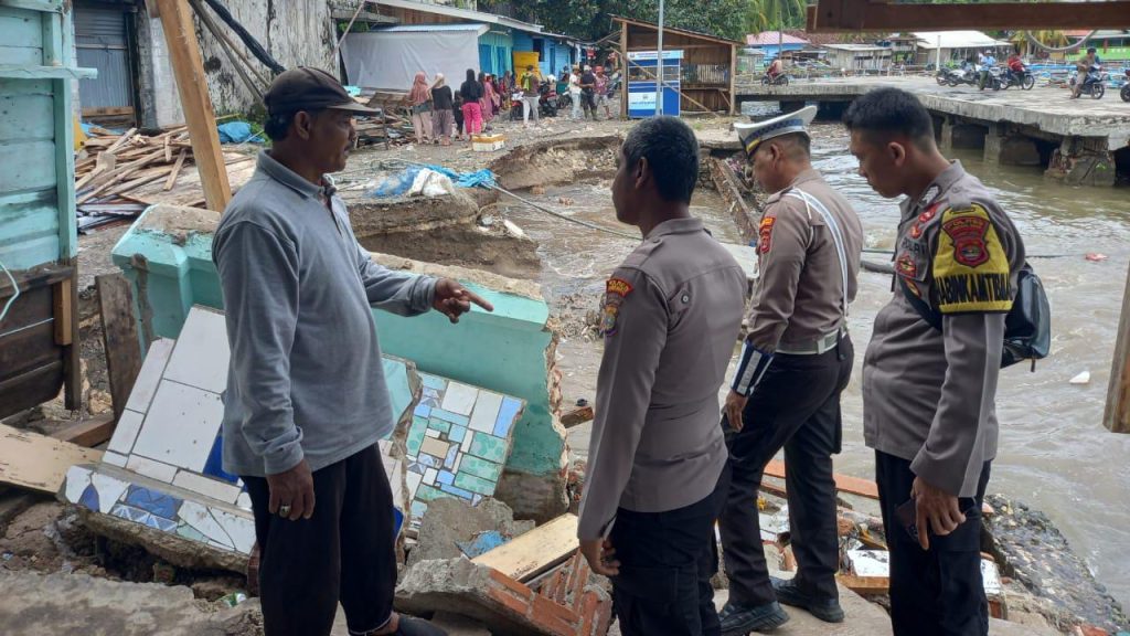 Personel Polsek Pesisir Tengah Amankan Dan Bantu Korban Bencana Alam Di Pelabuhan Kuala Stabas