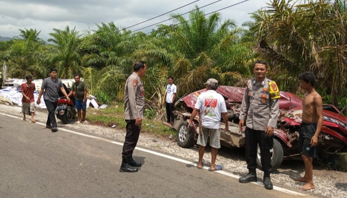 Tabrakan hebat ini menyebabkan Suzuki Carry Futura mengalami kerusakan berat di bagian kanan hingga belakang. Tak hanya itu, truk Hino Fuso juga terguling sebanyak dua kali, merobohkan satu tiang listrik dan menumbangkan dua pohon sawit di sekitar lokasi kejadian.