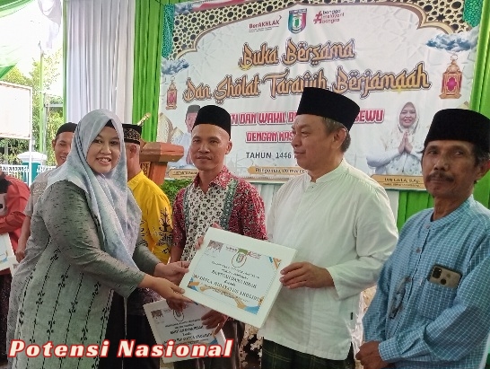 PRINGSEWU, POTENSI NASIONAL – Wakil Bupati Pringsewu Umi Laila menghadiri acara buka puasa bersama di Masjid Mufidurrohman, Pringombo, Kelurahan Pringsewu Timur, Kecamatan Pringsewu, Kabupaten Pringsewu, Kamis (6/5/2025) petang.