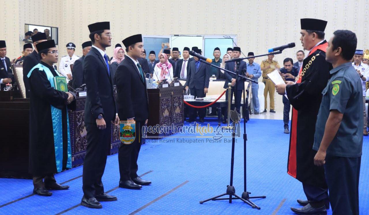 Pengucapan sumpah/janji pimpinan DPRD Pesibar tersebut berdasarkan Surat Keputusan (SK) Gubernur Lampung Nomor: G/649/B.01/HK/2024 tanggal 10 Oktober 2024 tentang peresmian pengangkatan pimpinan DPRD Pesibar masa jabatan Tahun 2024-2029 atasnama Mohammad Emir Lil Ardi, S.H., dari Partai NasDem sebagai Ketua dan Muhammad Amin Basri, S.M., dari PPP sebagai Wakil Ketua II.
