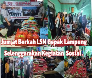 Bandar Lampung, Potensinasional– Lembaga Swadaya Masyarakat (LSM ) Gerakan Pembangunan Anti Korupsi (Gepak) Lampung ‘menggelar Kegiatan Sosial ,Jum’at berkah ,menyalurkan paket Sembako sebanyak 50 karung Beras untuk para anggota yang tergabung di LSM Gepak Lampung dan Nasi Kotak .